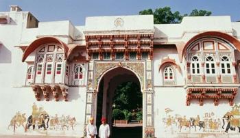 Rohet Garh is one of 80 hotel style accommodation located within Rajasthan. Rohet Garh, ancestral family home…a majestic fort located 40km from Jodhpur that overlooks a lake covered with lotus flowers…walled enclosure leading to a bright lawned garden, complete with peacocks, splashes of flowers and a swimming pool, has attracted impressive artistic clients.
